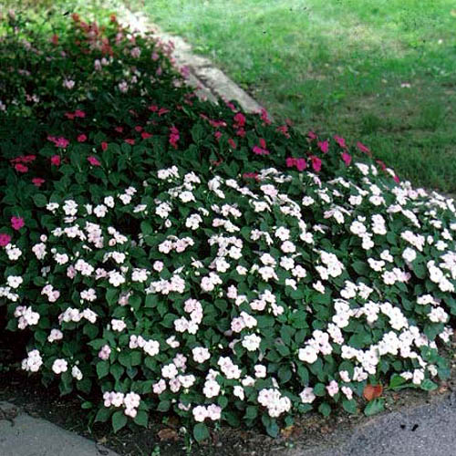 A classic favorite for adding abundant color to hard-to-plant shady areas. Impatiens seldom fail to please with its mounding growth habit and colorful flowers in shades of pink, white, red, purple, and orange. Does not perform well in sunny locations where it needs too much water.