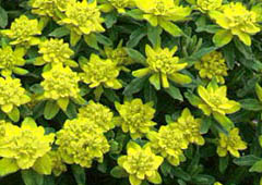 Showy yellow floral bracts provide the color, not the flowers, which are nondescript.
