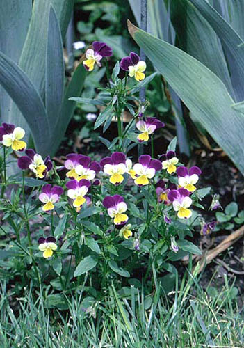 Violas, with their cheery yellow and purple flowers, are early-blooming annuals that mark the coming of spring in the garden. They prefer cool weather, and often die back and need to be removed when hot weather arrives.